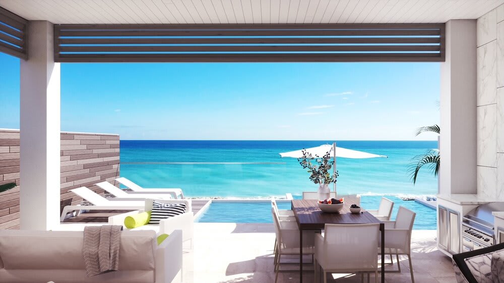 The North Residence at Indigo Condominium features expansive ocean views from all living spaces with beachfront terrace access from the master bedroom, living, and dining rooms.